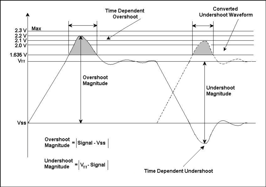 1. Overshoot Magnitude and Undershoot Magnitude are absolute values and should never exceed 2.3V under any circumstances.